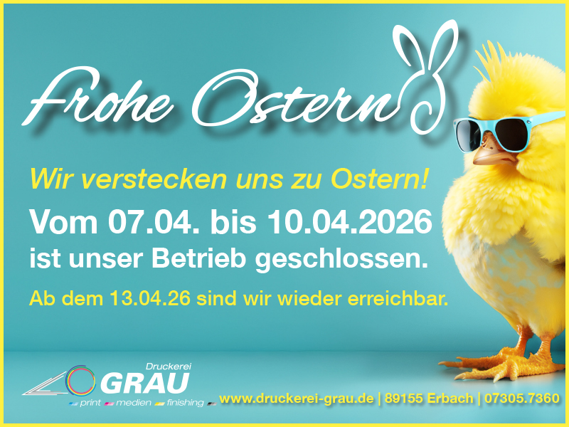 Wir haben vom 07.04.2026 bis 10.04.2026 geschlossen.